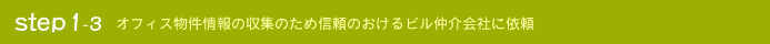 移転計画に沿って、オフィス物件情報の収集からスタートしましょう。幅広く、密度の濃い情報を集めるためにも信頼のおけるビル仲介会社に依頼するのが、効率よく情報収集できます。